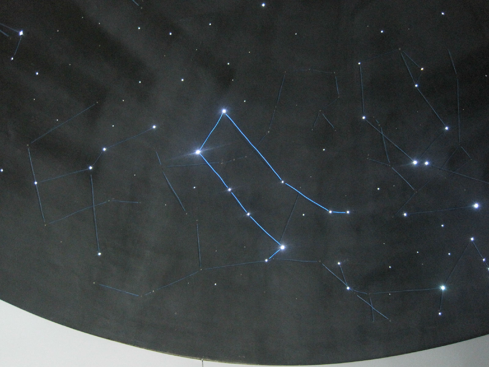 的恒星,以及星座名稱和星座連線,坐標(biāo)系和太陽(yáng)系行星視運(yùn)動(dòng),還增加了我古代星座三垣二十八宿的名稱和連線,以及在黃道上標(biāo)有二十四節(jié)氣等。另外,還配備有表演彗星,流星,日餌,宇宙飛船等近百臺(tái)特技效果放映器,還有幻燈機(jī),大屏幕投影機(jī)等設(shè)備。