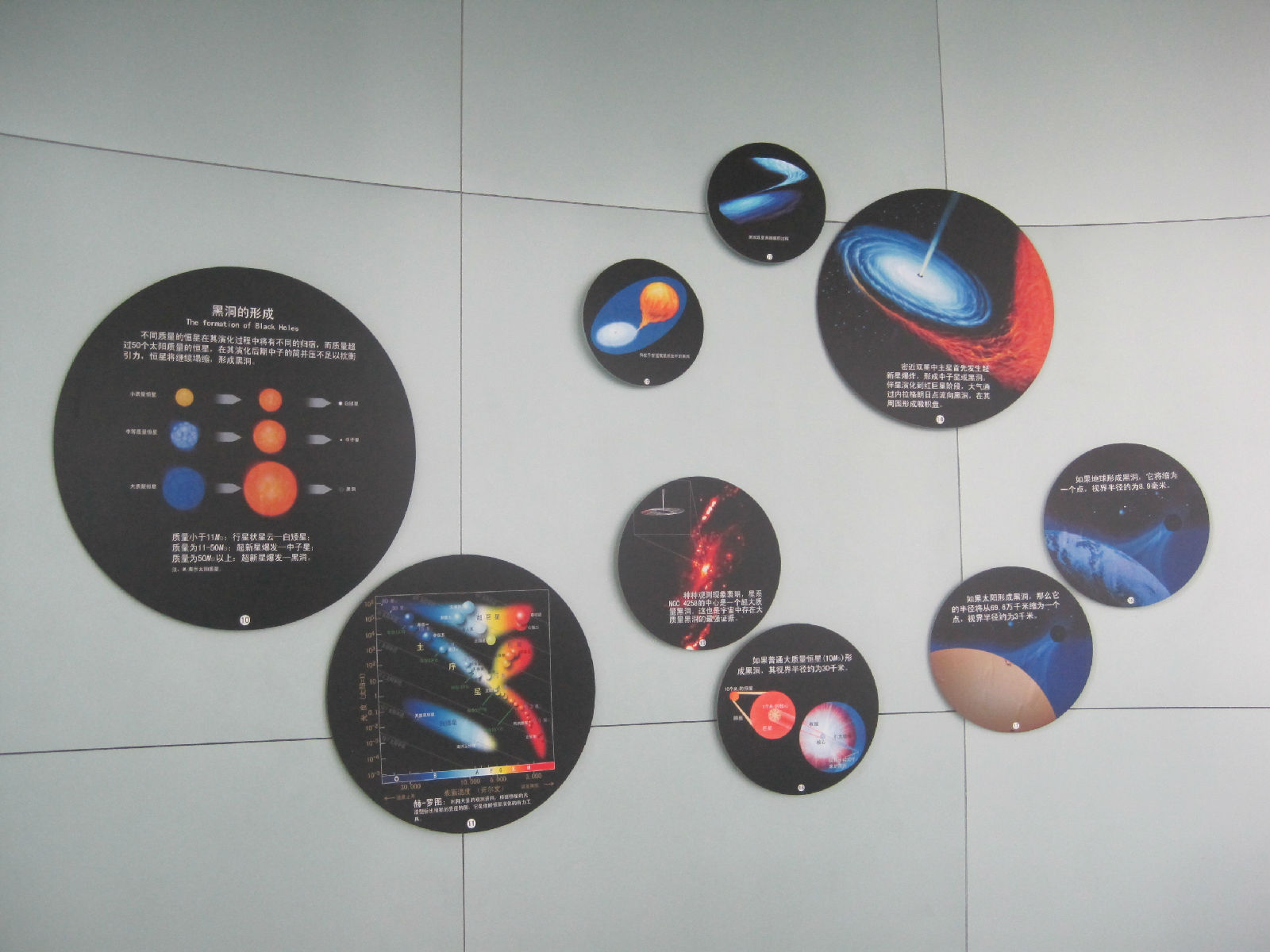 太陽(yáng)展示廳,展覽面積300米,以展出太陽(yáng)和太陽(yáng)系內(nèi)容為主。主要展項(xiàng)內(nèi)容有從太陽(yáng)真空望遠(yuǎn)鏡觀測(cè)接收而來(lái)的1.8米太陽(yáng)白光投影像;174毫米手描太陽(yáng)黑子白光全日面投影像;艷麗多彩的太陽(yáng)光譜投影像;太陽(yáng)白光、太陽(yáng)色球全日面和太陽(yáng)局部活動(dòng)區(qū)的CCD電視圖象等。北京天文館設(shè)施包括天象廳,門廳,展覽廳,報(bào)告廳,天文臺(tái)等。北京天文館是中國(guó)乃至亞洲大陸的第一座大型天文館,目前仍是大陸唯一的大型專業(yè)天文館。2004年12月12日,北京天文館新館落成,設(shè)施包括數(shù)字宇宙劇場(chǎng),3D影院 ,4D影院,太陽(yáng)展廳等。