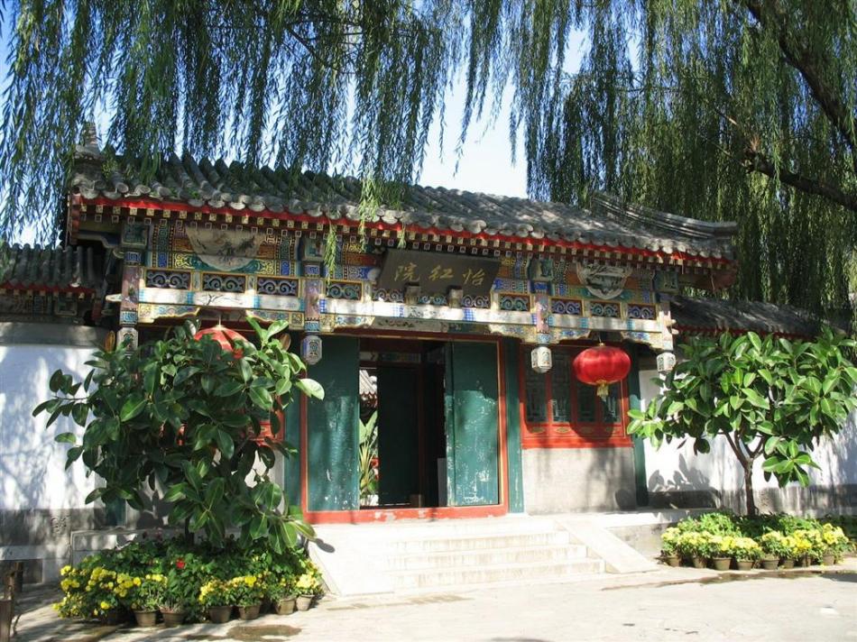 大概是取“以紅為怡,以綠為快”之意。門內(nèi)額書“青埂神瑛”,有人傳“青埂”諧音“情根”,“瑛”則是美石,暗諭多情種子賈寶玉。庭院中種植了一棵有五百年樹齡的羅漢松,暗寓主人出家當(dāng)和尚的命運(yùn)。