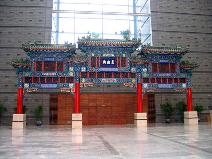 首都博物館建筑本身是一座融古典美和現(xiàn)代美于一體的建筑藝術品,既具有濃郁的民族特色,又呈現(xiàn)鮮明的現(xiàn)代感。巨大的屋蓋繼承了中國傳統(tǒng)建筑深遠挑檐;通長的石質幕墻象征著中國古代城墻;版權所有山東聊城聊之旅國際旅行社有限公司,轉載必究!廣場起坡傳承古代高臺建筑風格;在大廳北門外地面上鑲嵌清代丹陛,大廳內有明代牌樓,體現(xiàn)出中國傳統(tǒng)建筑平面中心軸線特點;橢圓形的青銅展館斜出墻面寓意古代文物破土而出。青銅、木材與磚石的大量運用更顯一種歷史的久遠。北廣場和大堂地面所用石材,產于自古以來為營造北京城供應石材的房山地區(qū);方形展廳的外裝飾,采用北京最常見的榆木;橢圓形展廳的外裝飾,采用青銅材料,并飾以北京出土的西周時期青銅器的紋樣。鋼結構棚頂、玻璃幕墻等表現(xiàn)出北京有力的時代步伐,高大空間和通透的視覺效果順應了當代建筑的國際流行趨勢。
