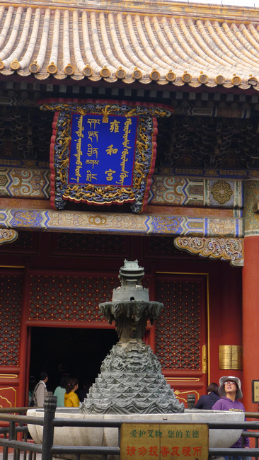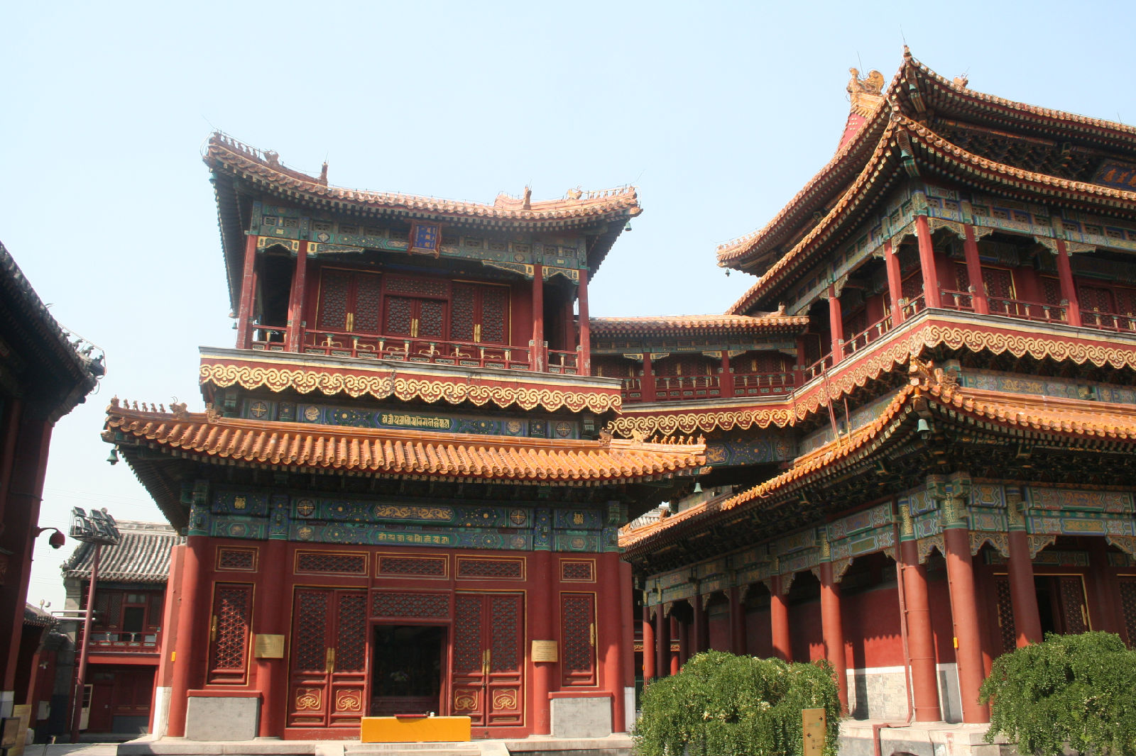 雍和宮(The Lama Temple)位于北京市區(qū)東北角,清康熙三十三年(1694年),康熙帝在此建造府邸、賜予四子雍親王,稱雍親王府。雍正三年(1725年),改王府為行宮,稱雍和宮。雍正十三年(1735年),雍正駕崩,曾于此停放靈柩,因此,雍和宮主要殿堂原綠色琉璃瓦改為黃色琉璃瓦。又因乾隆皇帝誕生于此,雍和宮出了兩位皇帝,成了“龍潛福地”,所以殿宇為黃瓦紅墻,與紫禁城皇宮一樣規(guī)格。乾隆九年(1744年),雍和宮改為喇嘛廟,特派總理事務王大臣管理本宮事務,無定員??梢哉f,雍和宮是全國規(guī)格最高的一座佛教寺院。
