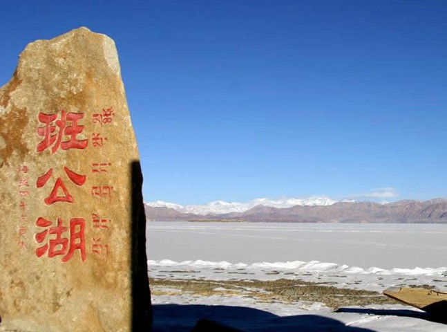班公湖:藏語稱錯木昂拉仁波,意思是“明媚而狹長的湖泊”。