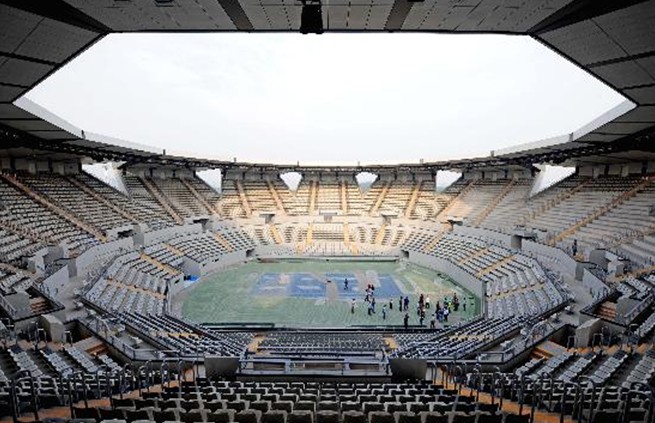 中心賽場是網(wǎng)球中心里最大的一朵“花”,48根傾角達到42度的現(xiàn)澆鋼筋混凝土懸挑斜梁,斜長約17米,每根自重達到62噸。版權(quán)所有山東聊城聊之旅國際旅行社有限公司,轉(zhuǎn)載必究!正是這48根巨大的懸挑斜梁撐起了12瓣花瓣,奧運會網(wǎng)球決賽時,將有10000名觀眾坐在這蓮花之中觀看巔峰對決。