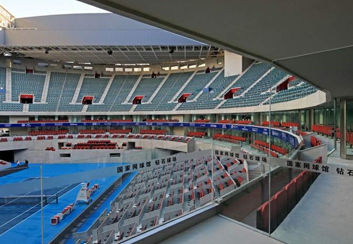 網(wǎng)球中心建設(shè)負責人孫彥朝說,網(wǎng)球中心設(shè)計時保留了“清水混凝土”的本色,不加任何裝飾,很好地與森林公園的綠色映襯起來,效果非常漂亮。