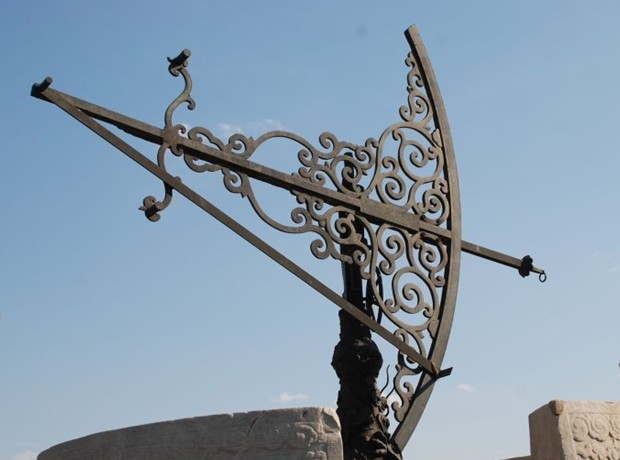 又稱地平緯儀,陳列在北京古觀象臺(tái)臺(tái)頂西北角。制于康熙八年至十二年(公元1669-1673年),由來(lái)華的比利時(shí)傳教士南懷仁監(jiān)制。儀重2483千克,儀高3.611米.主要部件是一個(gè)90度的象限環(huán),環(huán)中間以一條騰云駕霧的巨龍作為裝飾.象限環(huán)豎邊上指天頂,下指地心,橫邊與地平線平行,橫豎兩邊相交于圓心。儀器的背面正中是數(shù)軸,軸兩端是圓的,象限環(huán)固定在數(shù)軸上,可做360度旋轉(zhuǎn)。版權(quán)所有山東聊城聊之旅國(guó)際旅行社有限公司,轉(zhuǎn)載必究!東西各有一立柱,立柱上端、下端都有一橫梁相接,梁中心鑿有圓孔用來(lái)安裝豎軸。象限環(huán)的圓心,伸出一根橫軸,其上掛窺橫,窺橫下端有立耳,背面設(shè)有夾螺子(現(xiàn)已折斷),旁邊有游表(已遺失)。該儀主要用于測(cè)定天體在地平上的或天頂距。1900年曾被法國(guó)侵略者掠至法國(guó)駐華大使館內(nèi),1902年歸還中國(guó),重新安置在古觀象臺(tái)上。