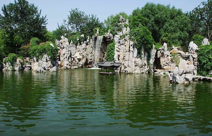 龍?zhí)毒皡^(qū):位于公園北部。巍峨的龍山建于水中,有14座身姿迥異的山峰,瀑布從主峰直瀉而下,遠(yuǎn)望似一座巨大的山石盆景。