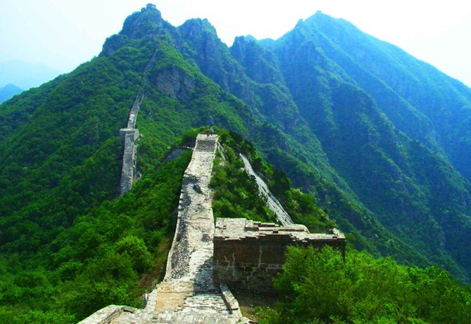 遇見倒塌的路段要繞出長城,在城墻的石縫里插上樹枝做梯子,再爬墻進去;天梯是一段70度陡坡、70-80米長的長城,最窄處60公分寬,臺階40-50公分高、15公分臺面,要四肢并用地爬;鷹飛倒仰有一處長城直立倒塌,要南轅北轍地繞道迂回過去,下山70-80度陡坡,要不抓住樹枝,很難站??;北京結(jié)到望京樓一段在長城里,東側(cè)是城墻,西側(cè)是灌木,沒有臺階,非常難走。上不去下不來的滋味不好受,建議大家在高度的團隊合作下共同完成。攀登用時單程2-3小時。