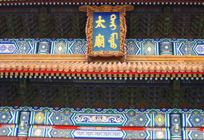 前殿,始建于明代,明末清初被毀得只剩有中間三間和殿柱。順治年間重修太廟大殿,完工后的大殿十一楹,深四楹,重檐列脊,殿額有滿(mǎn)漢文對(duì)照的"太廟"。殿外的三重臺(tái)基用漢白玉石欄環(huán)繞,月臺(tái)御道正面依次刻有龍文石、獅紋石和海獸石。殿內(nèi)的大梁為沉香木,其余用金絲榆木;地鋪"金磚";版權(quán)所有山東聊城聊之旅國(guó)際旅行社有限公司,轉(zhuǎn)載必究!天花板及四柱,均貼有赤金葉。殿內(nèi)供奉木制金漆的神座,帝座雕龍,后座雕風(fēng)。座前陳放有供品、香案和銅爐等。兩側(cè)的配殿設(shè)皇族和功臣的牌位。