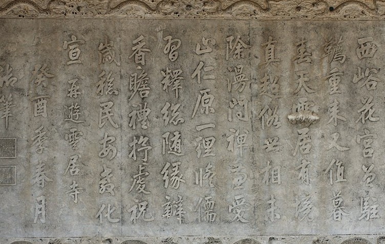 云居寺是佛教經(jīng)籍薈萃之地,寺內(nèi)珍藏著石經(jīng)、紙經(jīng)、木版經(jīng)號(hào)稱“三絕”。“石刻佛教大藏經(jīng)”始刻于隋大業(yè)年間(605年),僧人靜琬等為維護(hù)正法刻經(jīng)于石??探?jīng)事業(yè)歷經(jīng)隋、唐、遼、金、元、明、六個(gè)朝代,綿延1039年,鐫刻佛經(jīng)1122部、3572卷、14278塊。象這樣大規(guī)模刊刻,歷史這樣長久,確是世界文化史上罕見的壯舉,堪與文明寰宇的萬里長城、京杭大運(yùn)河相媲美,是世上稀有而珍貴的文化遺產(chǎn)。被譽(yù)為“北京的敦煌”、“世界之最”。“房山石經(jīng)”是一部自隋唐以來綿延千年的佛教經(jīng)典,不僅在佛教研究、政治歷史、社會(huì)經(jīng)濟(jì)、文化藝術(shù)等各方面蘊(yùn)藏著極為豐富的歷史資料。而且在書法藝術(shù)上有著重要的文化價(jià)值和藝術(shù)價(jià)值。