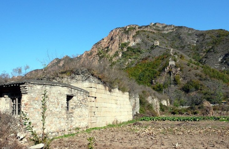 “因地形,用形制塞”是明長城常用的一種辦法,花廠峪口在低洼處筑高墻,應(yīng)用大山作為樊籬,到達(dá)了防護(hù)結(jié)果。圖為花廠峪南山上的障墻,外側(cè)似狼牙,直上山岳。老嶺在陳舊的燕山東端,山勢峻峭險峻,樹林茂盛,古長城的殘垣沿著山脊連綿向遠(yuǎn)方。花廠峪就是老嶺深處的一個山村,村子人家不多,散住在方圓約十幾公里的局限,隔個山梁的就算鄰人,從這家到那家上要走多半個小時。