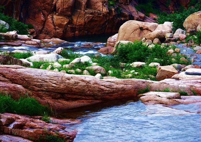 沿開花廠峪村進(jìn)溝,不斷往前走,能抵達(dá)北龍?zhí)?,踩著碩大的鵝卵,尤感山路坎坷難行。抬眼望去,倒是滿眼的景色。“兩岸青山相對出,潺潺溪水迎面來”。腳下鵝卵縫里的小溪,靜靜流淌著這山谷的苦衷。明澈見底的溪水里,游來游去著深思的魚兒。溝旁的山上怪石林立,同業(yè)的游人不住指指點點,阿誰像王母娘娘的寶座、阿誰像扛槍的兵士、阿誰像企鵝……是啊!這花廠峪的石頭,還真是一景!英姿勃發(fā)、千姿百態(tài)、肅靜莊嚴(yán)……在巨型長塊石頭上,我們看到很多像天書一樣密密層層的小淺坑,隨行的小伙子說是槍彈洞,讓人聯(lián)想到毛主席的詩“昔時酣戰(zhàn)急,彈洞前村壁。點綴此關(guān)山,今朝更美觀”。進(jìn)入了峽谷,給人們的第一覺得是奇、特、險。這里四處活動著美,四處彌漫著美。花崗巖、火山巖,經(jīng)由大天然巧奪天工的雕刻構(gòu)成了神志各別的天然景象。峽谷內(nèi)十分分明的巷子,往返往來不斷穿水路的覺得超等棒,看滿山的紅葉,點綴著這怪石林立,真是剛?cè)嵯酀?jì)、相得益彰。版權(quán)所有山東聊城聊之旅國際旅行社有限公司,轉(zhuǎn)載必究!高山是堅實的臂膀,怪石是傲然的風(fēng)骨,紅葉是漂亮的衣裳,溪水是流不盡的柔情。這一路走去,就是這山一程水一程,滿眼紅葉滿山情!走至岔路口,是一片大石頭,大得驚人,有的像床,有的像房,有的就像一大片平地,水石相依。坐在那片大石頭上野餐是最美但是的事。