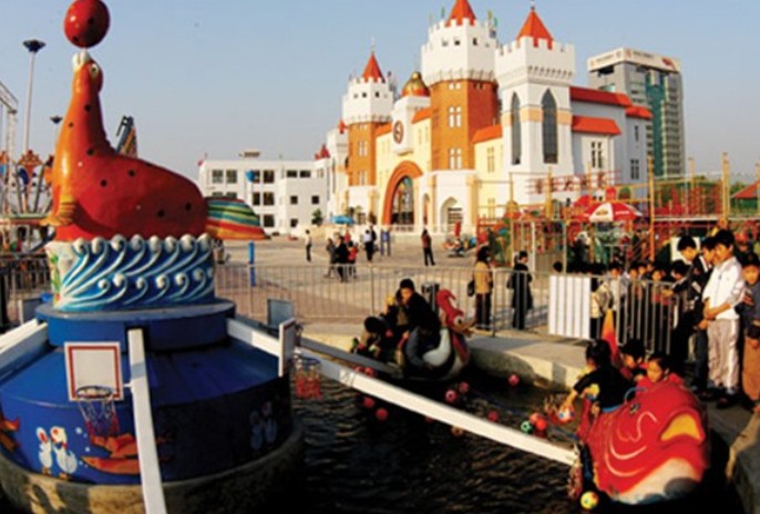 樂園坐落在河北廊坊金光道北,新開路東,永豐道南,市區(qū)繁華地段??偼顿Y4000萬元以上,其中基礎設施投資2500萬元,娛樂設施投資1500萬元??傉嫉孛娣e約150000平米,其中商業(yè)用房建筑面積約25360平米,園內有過山車、空中列車、自控飛船、激流勇進、碰碰船等大型娛樂設施15項,還有近7000平米的人工湖供游客進行水上活動。兒童樂園的綠化用地約8成平米,可稱得上是一個“綠色樂園”。