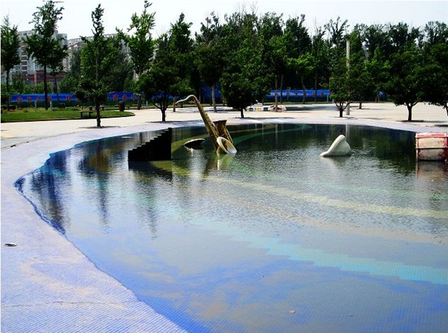 縱搖擺共設(shè)計4組,噴高為6-8米,分別布置在水池120米為邊的正方形上。噴水就像翩翩起舞的少女,忽兒獨舞,忽兒對舞,組成一排舞動的水幕。寓意廊坊一片生機勃勃的景象。