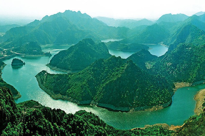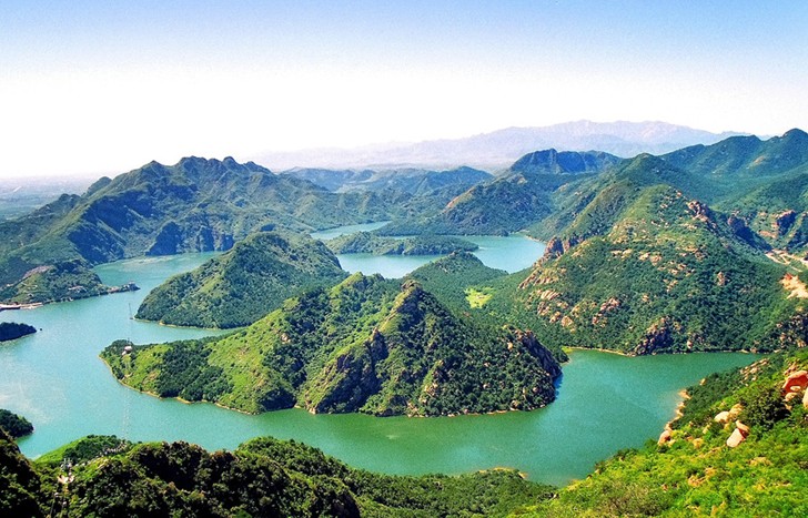 燕塞湖環(huán)繞在深山峽谷之中,延伸三十華里,沿岸懸崖峭壁千姿百態(tài)、 惟妙惟肖,自然景觀星羅棋布,蒼松翠柏、野杏山桃,映入水中如翠如碧,蘊(yùn)盡詩情畫意,素有北方“小桂林”、 “小三峽”之美稱。