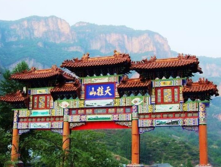 這里峰險、石奇、洞幽、泉多、林木繁茂、云霧繚繞。山上古建原為崇禎皇帝歸隱行宮,后改為青龍觀道院,又稱“北武當”。建筑群規(guī)模宏大,富麗堂皇,依山就勢,錯落有致。主要人文景 觀有:真武殿、大光明殿、東西 朝房、鐘樓、鼓樓、蒼巖宮、三道靈官閣等三十余處建筑。自然景觀主要有:真武洞、白毛女洞、無底洞、七泉一井、石乳長廊、飛來石門、大小天橋等。天桂山是一處集歷史古建筑和自然風光為一體的山岳古剎型風景名勝區(qū)。 宮天桂山呈典型的巖溶地貌,融山泉林洞于一體,集雄險奇于一身,頗具廣西桂林山勢之特點,這里四季如春,故有“北方桂林”之稱。山上主要人文景點是青龍觀道院,始建于明末原本為崇禎皇帝的歸隱行宮。除青龍觀之外,還有白毛女洞、真武洞聚仙堂等人文景觀。一九九七年,為慶祝香港回歸,版權所有山東聊城聊之旅國際旅行社有限公司,轉載必究!在天桂山一百多米高的峭壁上,鐫刻了一個巨大的“歸”字,字高97.71米寬49.1米,是世界上最大的漢字。 天桂山原名“三門寨”,因自然風光頗具廣西桂林山水神韻才改名。天桂山一帶分布大面積白石灰?guī)r、白云巖、碳酸鹽巖等,這些巖類很容易被水溶蝕,天長日久就形成了喀斯特地貌景觀,以山奇、洞異、水清為特色。抬眼望去,橫立在群山中的天桂山雄渾、壯觀,千余米的主峰直插云端。