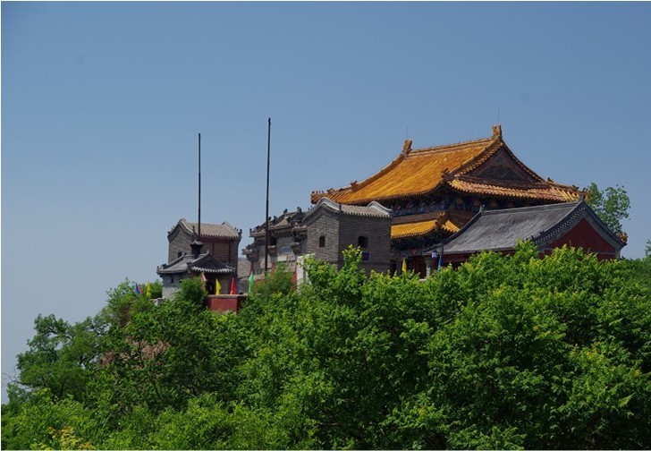景忠山始有廟宇上溯到宋代,現(xiàn)山上寺廟古建均為明清建筑。明嘉靖總兵馬永在山巔增建“三忠祠”,祠內(nèi)塑有諸葛亮、岳飛、文天祥三位精忠報(bào)國(guó)之臣,弘揚(yáng)儒家思想。取景仰忠義之意,山之舊名 明山、陰山遂改為“景忠山”。清順治十八年(公元1661年),又于“三忠祠”東側(cè)建碧霞元君殿,供奉道教神仙“天仙玉女碧霞元君”。曾在景忠山下鎮(zhèn)守長(zhǎng)城16年之久的著名民族英雄戚繼光,先后兩次對(duì)景忠山進(jìn)行了大規(guī)模修繕。清順治皇帝和康熙皇帝對(duì)景忠山格外垂青,曾六次登臨。不僅撥給大量田產(chǎn)帑銀,還曾御賜十六斤四兩重的金佛一尊及4500余卷的《大藏經(jīng)》一堂??滴踉倬爸疑胶蜕腥刖┏谴髢?nèi)講經(jīng),議決要政還曾去景忠山禮佛問(wèn)卜。據(jù)碑刻記載,順治立太子就是在景忠山問(wèn)卜后而欽定的,景忠山在清初實(shí)際被看作皇室家廟,當(dāng)時(shí)香火鼎盛,名馳天下。逐步形成了廟宇七十二,金面百六尊,山腳、山腰、峰頂完整的建筑體系。