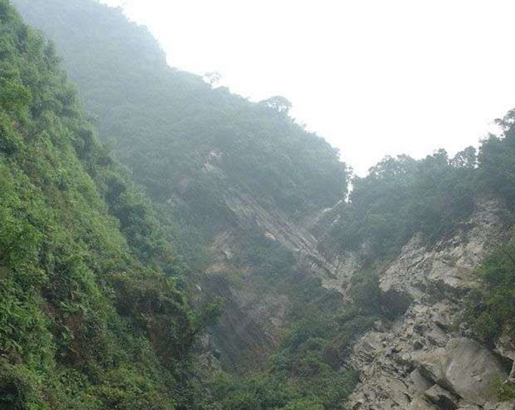 聚仙谷全谷長2500米,西南東北走向,逐步成梯形到頂峰海拔600米。溝深山險(xiǎn),兩邊巖壁如刀削一般,巖高數(shù)十丈,溝底巖閑上,長有老榆、銀杏、白臘、黑棗各種一尺多粗的古樹,巖壁上長有多年生長的喬灌木植物,溝內(nèi)有各種名貴藥材,夏季有清泉溪水下游,游人從溝底仰頭望天,只見一條藍(lán)線,故一線天之稱。