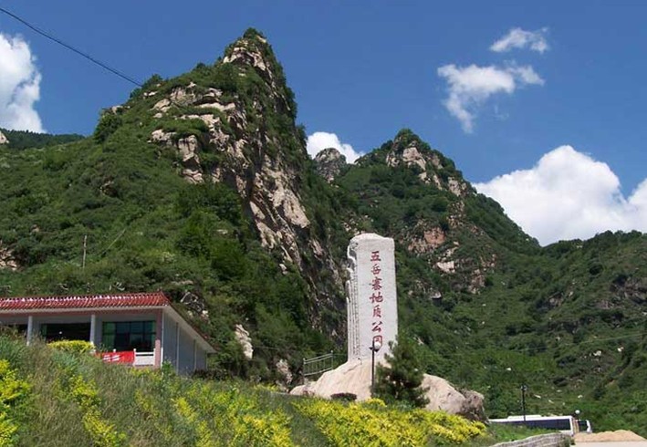 本區(qū)在地質構造上屬于華北古陸太行山中段東麓,區(qū)內廣泛出露中、下元古界變質巖系,其巖性主要為片麻巖、變粒巖、角閃片巖、斑狀花崗巖等。由于新生代喜馬拉雅運動的強烈抬升和差異斷塊活動。造成了平的華北平原(海拔幾十米)與高聳的太行山的強烈對比,形成了一系列相對高差較大的陡峭山峰,本公園就處在由古老變質巖基礎上發(fā)育起來的斷塊中山地區(qū),海拔1000-2150米,由于斷塊構造形成了景區(qū)內山地溝深坡陡、山勢雄奇險秀,峽谷多而幽險。五岳寨主峰呈五峰獨立之勢,如一組巨大的盆景被太行山當胸托起。主峰1946.5米,最低峰亦1880米以上。山勢陡峻、雄險,東南側陡崖壁立,直垂谷地深達數百米。僅十幾平方米的頂峰巖石平臺,三面臨萬丈絕壁、奇險無比。站在峰頂極目四望,蒼茫中天地一色,千山萬嶺盡收眼底,讓人真正體會到“會當凌絕頂,一覽眾山小”的境界。五岳寨地質資源豐富,山形地貌奇特,猴頭峰、石駝峰、鴛鴦石、將軍石等許多山峰奇形怪狀,擬人似獸、栩栩如生。