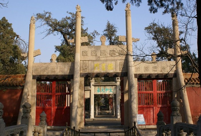 據(jù)《孟子》記載:“孟子曰:‘伯夷,圣之清者也;伊尹,圣之任者也;柳下惠,圣之和者也;孔子,圣之時(shí)者也。’”意思是說(shuō),在圣人之中孔子是最適合時(shí)代的。據(jù)此,清世宗于雍正八年(1730年)欽定孔廟正門(mén)名“圣時(shí)門(mén)”。圣時(shí)門(mén)始建于明永樂(lè)十三年(1415年),3間,弘治年間擴(kuò)為5間中設(shè)拱門(mén)3 券,碧瓦歇山頂,四周是深紅的墻皮,券內(nèi)是杏黃的墻里,前后石階上各有石刻龍陛。由拱門(mén)內(nèi)望,令人有深邃莫測(cè)之感。