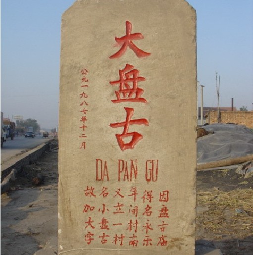地處河北省滄州市北的青縣城南6公里有村曰“大盤古”,村西有座盤古廟。盤古廟始建于元世祖至元十五年(1278年),明弘治和崇禎年間曾重修,清康熙二十七年(1688年)因河流沖刷,設于秋祠西南重建,均有碑記。據(jù)文獻記載和民間傳說,當年的盤古廟狀似北京的故宮三殿,石、磚、木結構,琉璃瓦蓋頂,金碧輝煌,蔚為壯觀。