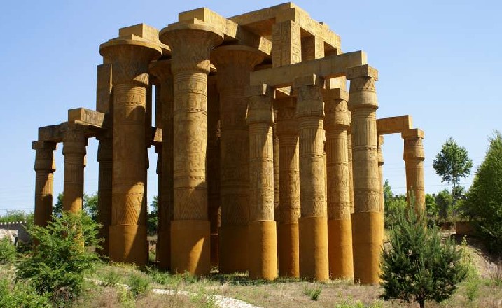 卡納克神廟是埃及的雄偉高大的建筑群。公元前1870年,埃及法老下令修建了一片廟宇群,它由20多座神廟組成。它是法老敬獻(xiàn)給太陽神和月亮神的最高禮物,經(jīng)過三千多年的風(fēng)雨侵蝕,現(xiàn)已殘缺不全。這些石柱是遺址中具有代表性一部分,石柱上的圖紋和象形文字,反映了當(dāng)時(shí)古埃及人勞動(dòng)、生活、敬神等情景。