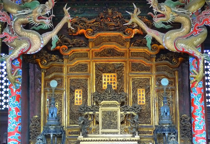 崇政殿:又稱“金鑾殿”,通稱“正殿”,是皇太極處理政務(wù)、接見使臣的場所,清代歷朝皇帝東巡祭祖時也在此聽朝理政。面闊五間,綠剪邊黃琉璃瓦,單檐硬山頂,前后有出廊,圍以石護欄。殿內(nèi)為徹上明造,和璽彩繪,寶座后有貼金龍扇屏風(fēng),旁為貼金蟠龍柱。殿外庭院左右有飛龍閣、翔鳳閣、東七間樓和西七間樓。