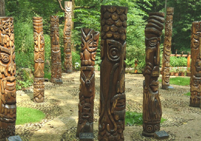 薩滿圖騰林,一共有 15 根圖騰柱,上面雕刻的神像形態(tài)各不相同,因?yàn)樗_滿教是原始的多神教, 是在“萬物有靈”的觀念支配下所形成的一種多神崇拜。 滿族人信仰的神靈很多,但是薩滿教沒有廟宇和神祠,也沒有專職的掌教和祭主等神職人員。信奉此教的人們,在族人中自發(fā)形成一位“察瑪”,主管每次祭祀天地、山神、土地和祭祖、許愿等重大活動。 神靈,則多用木雕或繪畫的形式體現(xiàn)。