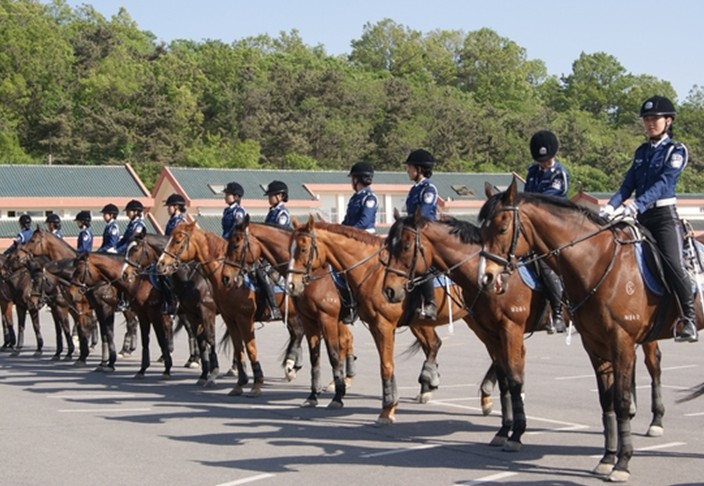 被譽為“華夏警花第一騎”大連市公安局巡警支隊女子騎警大隊組建于1994年12月,是國內成立最早的一支女子騎警隊伍。女子騎警大隊現有民警44人,其中女民警38人,平均年齡27歲,裝備有英純血馬100匹。主要負責著繁華場所路段的巡邏、大型商貿文體活動的執(zhí)勤,首長外賓的禮儀警衛(wèi)、禮儀展示等任務。市政府撥專款建設了女騎警訓練基地,占地面積3萬平方米,其中有2500平方米的辦公大樓,周長415米的跑馬場和6000平方米的表演場。