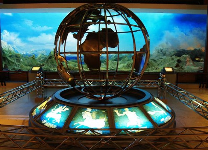 大連自然博物館的展覽是以“自然與人”為主題進(jìn)行設(shè)計的。當(dāng)觀眾步入館內(nèi)的陳列大廳時,首先躍入眼前的是由肯尼斯•貝林先生于2003年捐贈的非洲象,肩高3.0米,體長約5.1米,尾長1.5米,體重約6000公斤。后面是一幅長22米,高3米的大型浮雕,他們將“自然與人”藝術(shù)而完美的融合在一起,氣勢宏大而壯觀,充分體現(xiàn)了濱城特色和陳列展示主題。