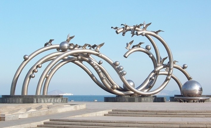 海之韻,一個(gè)富有詩(shī)意的名字,給予一個(gè)富于韻律的廣場(chǎng), 加上自然的磅礴大氣和設(shè)計(jì)者的獨(dú)具匠心造就了大連東海岸上詩(shī)情畫意的海之韻廣場(chǎng)。它與星海廣場(chǎng)遙相呼應(yīng),像兩顆明珠照亮了大連的海岸線。版權(quán)所有山東聊城聊之旅國(guó)際旅行社有限公司,轉(zhuǎn)載必究!廣場(chǎng)面積3.8萬(wàn)平方米,由13000平方米的鋪裝廣場(chǎng)、12000平方米的綠地和許多精致雕塑組成。該廣場(chǎng)的主角毫無疑問是雕塑,從西門進(jìn)入廣場(chǎng),首先奪了你視線去的就是海之韻的主題雕塑,五根曲率不同的白鋼管為主體的雕塑,據(jù)說長(zhǎng)19.9米,象征1999年9月是大連建市100周年;21只飛翔的海鷗象征飛向21世紀(jì);50個(gè)大小不同的球體即代表原子結(jié)構(gòu),又寓意建國(guó)50周年。在我看來五根波浪般的鋼管是波浪造就的五線譜,小鋼球是跳躍的浪花,大海在譜寫它獨(dú)有的樂章,海鷗在和樂起舞,這雕塑仿佛就是對(duì)蔚藍(lán)大海的抽象寫生。