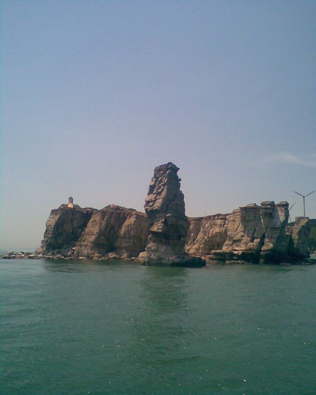 高69.7米,是一綿延幾百米的巨崖,由于千萬年來風(fēng)浪的侵蝕,石崖漸成了上凸下凹之勢,壁面犬牙交錯(cuò),石窟、石穴鱗次櫛比,是眾多水鳥棲息的樂園。