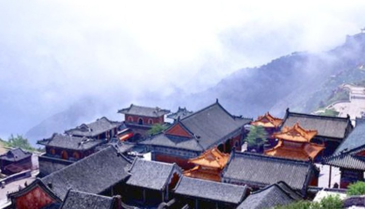 西神門(mén)與天街相連,東神門(mén)與通玉皇頂?shù)谋P(pán)道相接,兩門(mén)形式相同,均石砌拱 形門(mén)洞,高3.4米,寬3.25米,進(jìn)深5.4米。上筑閣樓各3間,面闊8.8米,進(jìn)深3.5 米,通高4.9米,二柱六檁六架梁,重梁起架,卷棚歇山頂,施墨線小點(diǎn)金彩繪。