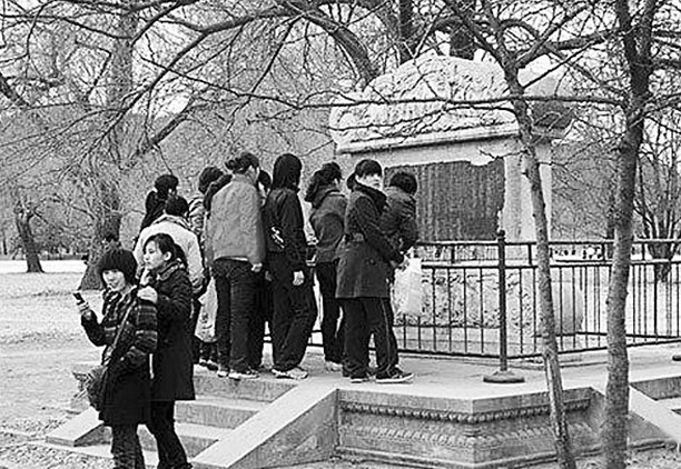 在避暑山莊澄湖北岸、萬(wàn)樹(shù)園南端,與煙雨樓遙遙相對(duì),是一碑帽、碑座齊全的臥碑。用漢白玉雕成,分碑首、碑身、碑座三部分。碑首為卷云意頭式,內(nèi)刻群仙祝壽圖。碑身高0.98米、寬1.98米、厚0.4米,陽(yáng)面鐫刻有乾隆的《綠毯八韻》詩(shī),描寫(xiě)山莊豐美的水草、綠毯般的天然美景;陰面是乾隆的《平旦》詩(shī),版權(quán)所有山東聊城聊之旅國(guó)際旅行社有限公司,轉(zhuǎn)載必究!詩(shī)中炫耀“清明盛世”,極富政治色彩。