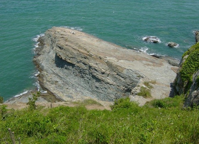 嶗山有名的八仙墩就在嶗山東南突出的海岬嶗山頭。據(jù)《嶗山志》記載:“八仙墩,有石坡廣數(shù)畝,東下斜插入海,海水洶涌,山勢若動,其北則峭壁千仞,險峨逼天,下納上覆,其勢欲傾,石層作五色斑駁如銹,處其下者,仙墩也。大石錯布,面平可坐,海濤沖涌直上與墩相擊,搏浪花倒卷數(shù)丈,飛舞空際,如玉樹,如銀花、如琉璃,如珠磯,可喜可腭,洵山海奇險之極觀也。”這里水流湍急,驚濤駭浪,洶涌澎湃,再加這里的石墩,石壁均為變質(zhì)巖,紅、黑、灰、青、白相間,重重疊疊,斑斕絢麗十分壯觀,所以又被稱為“海橋仙墩”。明代大學士高弘圖說:“八仙墩如錦茵繡籍,實第一奇,第一麗”。