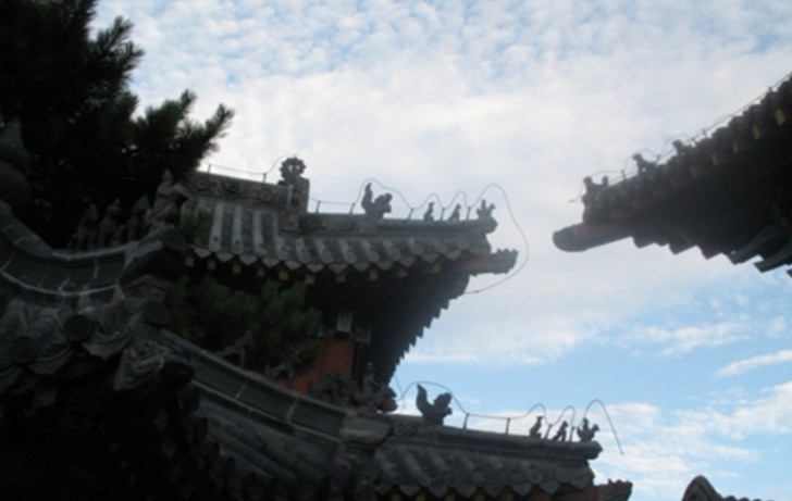 據《泰山道里記》和《岱覽》載,唐代前泰山頂上女神早有玉女或元君的稱號。宋真宗大中祥符元年(1008年)東封泰山時雕玉女像,鑿龕供于玉女池旁。至宋元年間始建玉女祠,金改稱昭真觀,明洪武年間重修,號碧霞元君,成化、弘治、嘉靖年間拓建重修,正殿施銅瓦,萬歷四十三年(1615年)鑄銅亭(當時稱金闕,現存岱廟)。清代順治年間神門上增葺歌舞樓及石閣,乾隆年間建御碑亭及鐘鼓樓,同治年間建香亭。其中在康熙年間因水沖廟毀而重修,道光十五年(1835年)又重修。碧霞祠現存建筑保留了明代的規(guī)模及明代的銅鑄構件,建筑風格多為清代中晚期的風格。南大門筑于重臺上,前后廊式。廊下東、西山墻上筑神臺,供青龍、白虎、朱雀、玄武四方護衛(wèi)神銅像。正殿,上覆蓋瓦、鴟吻、檐鈴,均為銅鑄,檐下有乾隆御賜匾額“贊化東皇”。大殿5間,面闊24.7米,進深15.1米,通高13.7米,四柱七架梁,重梁起架,十一檁前后廊式,九脊歇山頂,四角施角柱。正間寬5米,次間寬4.4 米,稍間寬3.45米,檐下施斗拱柱頭科單杪雙下昂六踩,斗拱上承托桃尖梁頭,平身科各間數量不同,正間6柁,次間5柁,稍間4柁,均單杪雙下昂五踩。斗拱上承托螞蚱頭,角科單翹重昂七踩,轉角斗拱上承托寶瓶,檐下及后檐下亦施斗拱,形式與前面相同。屋面的筒瓦、大脊螭吻、垂脊、垂獸等構件皆銅鑄。版權所有山東聊城聊之旅國際旅行社有限公司,轉載必究!大脊上飾雙鳳纏枝花紋,戧脊有6個獸和1個仙人,檐上瓦釘處飾立體走龍,均為銅鑄。歇山與山墻的交角處飾人物圖案,每面9個。殿內槽柱上施四柁隔架斗拱。柱上施井字形天花板,正間內斗拱相圍呈八角形藻井,中間高浮雕盤龍戲珠。正間和西次間均設石雕仰覆蓮紋須彌座神臺:正間神臺裝木構雕花神龕,祀元君銅像,兩側為眼光、送生兩神銅像;東次間神臺供眼光奶奶及二侍女銅像,西次間神臺供送子娘娘和二侍女銅像。正殿內懸康熙帝巨匾“福綏海宇”。祠以照壁、火池、南神門、大山門、香亭、大殿為中軸線,左右分列東西神門、鐘鼓樓、御碑亭、東西配殿等建筑。結構嚴謹,布局緊湊,南北長76.4米,東西寬 39米,總面積2979.6平方米。照壁和火池均在南神門外,照壁下部石砌,上部砌作五脊墻頂,北面鑲石板4 塊,大書“萬代瞻仰”。壁高3.45米,寬5.22米,厚0.65米。火池一間在照壁北,又名金藏庫,磚石建造,面闊5.3米,進深5.3米,通高5.7米,無梁檁橫磚發(fā)券,筒瓦五脊歇山頂。面北開一門,東西山墻各開一窗,是香客焚燒幣帛及香紙的地方。南神門外是金藏庫,俗稱火池,專供香客焚紙香?;鸪赜姓毡冢髸?ldquo;萬代瞻仰”。門上有歌舞樓,門內東有東神門,西有西神門,盤道穿越其間。院中東為鐘樓,西為鼓樓,北為重臺。在火池北,石砌方形,頂部條石平鋪。門寬2.7米,進深 5.26米,高2.73米,東西各有小房一間,門相對。門有歌舞樓3間,面闊9.79米,進深4.95米,通高4.9米,兩柱六檁六架梁,重梁起架,卷棚歇山頂,東西山頂各開一拱形門,北面無壁。檐檁墊板等施墨線小點金彩繪。西神門與天街相連,東神門與通玉皇頂的盤道相接,兩門形式相同,均石砌拱形門洞,高3.4米,寬3.25米,進深5.4米。上筑閣樓各3間,面闊8.8米,進深3.5 米,通高4.9米,二柱六檁六架梁,重梁起架,卷棚歇山頂,施墨線小點金彩繪。三神門間各有北向小房,頂部鋪條石,將東西閣樓和歌舞樓連在一起,有石階相通。鐘鼓樓位于大山門前東西閣樓北,面闊、進深均5.4米,通高7.38米,方形重檐五脊歇山頂,灰色筒瓦,樓身施四通柱,上下層間施四楞木鋪釘木板。上屋施角梁、扶角梁、金枋等起架。金枋上橫置一圓梁懸掛獸鈕蓮口銅鐘。施墨線小點金彩繪。大山門,5間,面闊19.8米,進深11.2米,通高12.15米,五柱九檁七架梁,中柱前后廊式,重梁起架,九脊歇山頂,筒瓦板瓦、大脊垂脊、勾頭、滴水、螭吻、走獸等均鐵鑄。正次間中柱下裝3門,稍間檐下砌墻開圓拱窗,內置青龍、白虎、文曲、武曲星君4銅像。檐下施斗拱,柱頭科為單杪雙下昂七踩斗拱;平身科每間4柁,也為單杪雙下昂七踩斗拱。斗拱檐檁普柏枋、闌額、墊板、由額及雀替施墨線大點金彩繪。東西御碑亭,位于大山門后兩側,方形,面闊進深均6.2米,通高7.9米,施四通柱,九脊重檐歇山頂,黃琉璃瓦蓋頂。檐下施斗拱,一斗二升交麻葉頭。下層四周砌墻。兩碑亭均開一南向門及向院內的門。斗拱檁枋上施墨線大點金彩繪。亭內置乾隆登岱詩漢白玉碑。東西配殿各3間,面闊13米,進深7.7米,通高8.4米,四柱五架梁,七檁前后廊式,重梁起架,五脊硬山頂。版權所有山東聊城聊之旅國際旅行社有限公司,轉載必究!檐下施斗拱,柱頭科單下昂三踩。斗拱上承托抱頭梁(螞蚱頭狀),平身科,單下昂三踩。斗拱上托六分頭,檁枋斗拱上飾墨線大點金彩繪。東配殿供眼光奶奶和二侍童銅像,西配殿供送生娘娘及二侍童銅像。瓦面的板瓦、筒瓦、大脊、螭吻、勾頭、滴水、走獸等皆鐵鑄。院中為香亭,即明萬歷年間所鑄金闕處,金闕后移山下。今亭重檐八角,內祀元君銅像。亭兩側有銅碑對峙:東為明萬歷年間《敕建泰山天仙金闕碑記》;西為天啟年間《敕建泰山靈佑宮碑記》。亭前有明嘉靖和萬歷年間銅鑄千斤鼎和萬歲樓。香亭,在正殿前院中,方形,面闊進深均5.8米,通高8.3米。亭身四通柱,周列角柱和輔角柱,共12根,形成下層環(huán)廊。柱上施斗拱、柱頭科一斗二升交麻葉頭,平身科每面8個,一斗二升螞蚱頭。