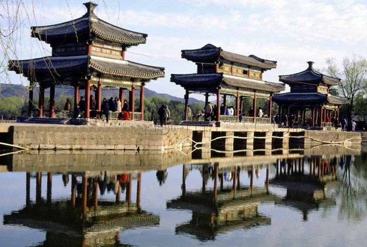其中,清音閣:俗稱大戲樓。與北京圓明園同樂園中的戲臺同名,與現(xiàn)存故宮暢音閣、頤和園中德和園大戲樓形式相近。閣高三層,外觀雄偉。結(jié)構(gòu)精巧,閣內(nèi)布景逼真,音響效果很好。清音閣平面方三間,樓閣三重,舞臺寬17米,進(jìn)深15米。清音閣的三層樓,上層稱“福臺”,懸掛“清音閣”三字御制匾額 中層名“祿臺”,額題“云山韶渣”;下層曰“壽臺”,額題“響葉鈞天”,取“福祿壽三星吉祥”之意。壽臺的天棚上有天井,地板下有五口地井,其中除一口水井有水外,其余均為枯井。在舞臺下設(shè)置這些地井,是為了增強(qiáng)舞臺上的音響共鳴效果。有時也配合劇情,適當(dāng)使用舞臺設(shè)施,如由三樓布成天降大雪情景,佛自天降也是從三樓懸系下來的,而菩薩渡海、妖魔破土而出則從舞臺下的地井內(nèi)上來的。水井也能配合劇情引水上臺。
