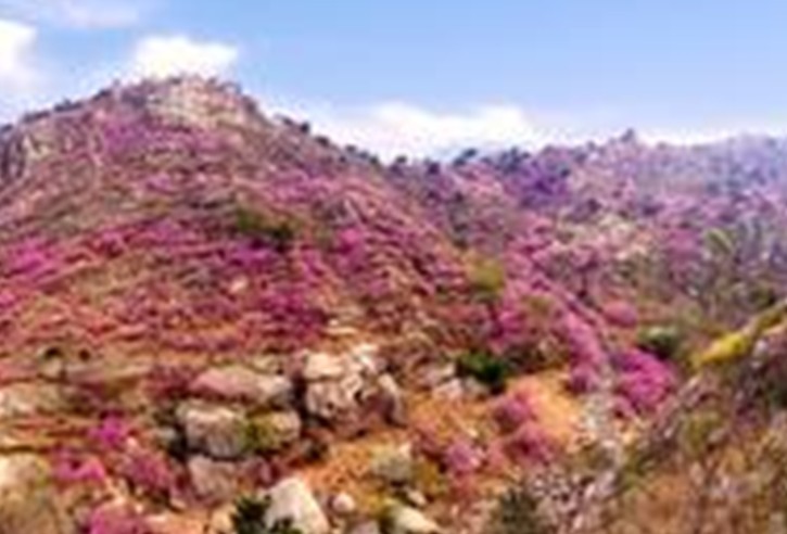 在大珠山東麓,有一條山谷,人稱珠山秀谷。這條山谷有5里之長(zhǎng),谷內(nèi)溪水奔流,匯入山下的人工湖。碧水和青山相依相擁,青峰倒映在碧水中。游人繞湖邊行,緣溪水入山谷,猶如走進(jìn)畫境。珠山秀谷里春天來得早。清明節(jié)還不到,山谷入口處的櫻桃花、杏花、桃花相繼盛開。清明節(jié)一過,在山谷里的溪水畔和山坡上,嬌黃的連翹花團(tuán)團(tuán)簇簇,潔白的棠梨花一片連一片。春風(fēng)吹拂,花枝搖曳,山谷里金波涌動(dòng),雪浪起伏。再往山谷深處走,有一道花的山峰縱向而立,又把這條山谷分成兩條山谷。順北面的山谷繼續(xù)前行,只見南面背陰山坡上,紅色的杜鵑花從谷底一直開到山頂,就連山崖上和峭壁上,也花叢茂盛,花影綽約。站在山下往山頂望去,“花浪”排空,直接藍(lán)天,叫人覺這花兒是天界飄下的芳菲;站在山坡高處向下望,“花潮”滾滾,滿山谷里騰著花煙花霧,叫人想到這花兒是大地深處生發(fā)出的瑞氣紫光。沿著花間的石階路走,你的周圍到處是花的洪流,花的瀑布,人被裹進(jìn)了花的漩渦中。進(jìn)入4月,珠山秀谷里花如海,人也充谷盈川,花事和游人匯成了旅游潮。登上山頂,可見南面有好幾條山谷里也盛開著杜鵑花,遠(yuǎn)遠(yuǎn)望去,如云似霞。