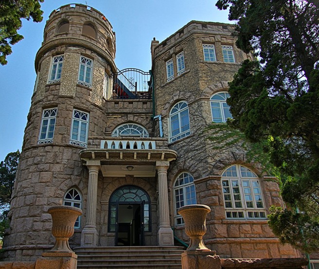蘇聯(lián)十月社會主義革命后,一大批俄國人來到青島定居,這些俄國人中有的頗為富有。1932年,據(jù)說一位名叫格拉西莫夫的白俄在臨海呷角上修建了這座海濱別墅。樓門臺階下為花崗巖石尊,可用于晚間燃火照明,也可用于栽花,正面為圓形和多角形組合而成的建筑造型,十分別致。主體共5層,頂層為觀海臺,側(cè)有鐵尖頂。由于樓內(nèi)由大理石貼墻面,樓外又砌有鵝卵石,多年來人們一直稱之為“花石樓”。 版權(quán)所有山東聊城聊之旅國際旅行社有限公司,轉(zhuǎn)載必究!樓下石階分為2層,上層6級,下層9級,有石徑通往鐵欄大門,庭園內(nèi)廣植花木,是青島頗具特色的著名建筑。