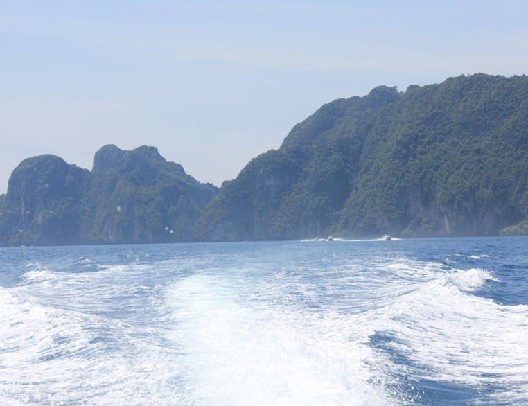 第二天清晨,安靜的街道與夜晚相比少了幾分喧鬧,空氣也充滿了閑適和浪漫的氣氛,鳥兒在樹上自娛自樂地唱歌,貓兒在路旁打著盹兒。走在松軟的沙灘上,感受腳丫被細沙溫柔撫摸的感覺,有種說不出的舒服。循著烤面包的香味,傻子都能找到一家小店,吃一頓美味的早餐。酒足飯飽之后,便向傳說中的瑪雅灣挺進——萊昂納多-迪卡普里奧主演的電影《海灘》就是在這里取景的。電影里的椰子樹和房屋都是另外搭建的,但湛藍的海水和影片中一樣清澈,透過強烈陽光可以看見水底悠游的魚兒。因為三面都是懸崖,這里成了絲毫不受塵世污染的世外桃源。舉起相機隨便按下快門,任何一張照片都可以當風光明信片。