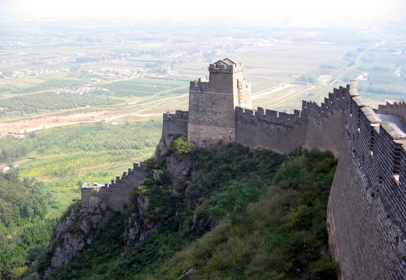 角山景區(qū)集山、城、寺為一體。大門是仿明代城堡建筑形式設(shè)計(jì)的。其造型像個(gè)“山字”。正額“角山長(zhǎng)城”匾是原國(guó)務(wù)院副總理、中國(guó)長(zhǎng)城學(xué)會(huì)會(huì)長(zhǎng)黃華題寫的,背額“碧海峰”匾為當(dāng)代詩(shī)人賀敬之的手筆。有詩(shī)云:“自古盡道關(guān)城險(xiǎn),天險(xiǎn)要隘在角山,長(zhǎng)城倒掛高峰上,俯瞰關(guān)城在眼前。”足以證明角山的險(xiǎn)要。角山長(zhǎng)城是明朝遼東鎮(zhèn)和薊鎮(zhèn)兩座軍事重鎮(zhèn)的界線,建有敵臺(tái)、戰(zhàn)臺(tái)5座,關(guān)隘一座。站在角山最高峰大平頂上,極目遠(yuǎn)眺,令人遙想到當(dāng)年古戰(zhàn)場(chǎng)上戰(zhàn)鼓齊鳴、刀光劍影的壯闊場(chǎng)面。