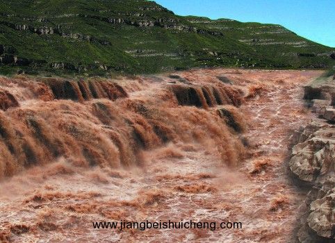 黃河壺口瀑布位于宜川縣城以東35公里,吉縣城西45公里處的晉陜峽谷黃河河床中,已成為世界上最大的黃色瀑布,因其氣勢雄渾而享譽(yù)中外。 壺口瀑布,是由于黃河流至壺口一帶,兩岸蒼山夾峙,把黃河水約束在狹窄的黃河峽谷中,河水聚攏,收束為一股,奔騰呼嘯,躍入深潭,濺起浪濤翻滾,形似巨壺內(nèi)黃水沸騰。巨大的浪濤,在形成的落差注入谷底后,激起一團(tuán)團(tuán)水霧煙云,景色分外奇麗。站在河邊觀瀑,游人莫不唱起“風(fēng)在吼,馬在叫,黃河在咆哮”這威武雄壯的歌聲。
