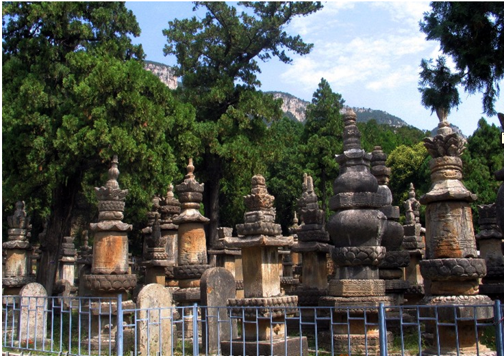 墓塔林中部為一南北甬道,其北端建有磚石結(jié)構(gòu)、單層重檐式北魏祖師塔(法定墓塔),甬道兩側(cè)列峙全石結(jié)構(gòu)群塔,依塔身形制分為方碑形塔、鐘形塔、鼓形塔、穿堵婆塔(喇嘛塔)、經(jīng)幢式塔、亭閣式塔六種。