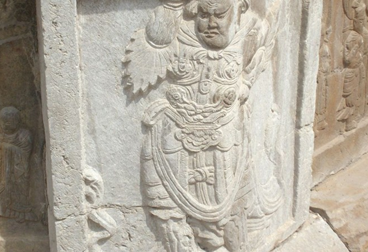 “辟支”出于佛教,音譯為“辟支迦佛陀”,略稱“辟支佛”,辟支塔,意即辟支佛塔。辟支塔為一座八角九層樓閣式磚塔,塔高55.7米,塔基為石筑八角,上有浮雕,鐫刻有古印度孔雀王朝阿育王皈依佛門等故事。塔身為青磚砌就,各層皆施腰檐,下三層為雙檐,二至四層檐下置平座。塔檐與塔徑自下而上逐層遞減,收分得體。塔內(nèi)一至四層設(shè)塔心柱,內(nèi)辟券洞,砌有臺階,可拾級而上,自第五層以上砌為實(shí)體,登塔須沿塔壁外腰檐左轉(zhuǎn)90度進(jìn)入上層門洞。塔身上置鐵質(zhì)塔剎,由覆缽露盤、相輪、寶蓋、圓光、仰月、寶珠組成,自寶蓋下垂八根鐵鏈,由第九層塔檐角上的八尊鐵質(zhì)金剛承接,在塔內(nèi)延續(xù)到地下,起避雷作用。辟支塔氣勢雄偉、造型美觀、結(jié)構(gòu)復(fù)雜、比例適當(dāng),呈典型的宋代風(fēng)格,為靈巖寺標(biāo)志性建筑。宋代文學(xué)家曾鞏有詩贊曰“法定禪房臨峭谷,辟支靈塔冠層巒”。