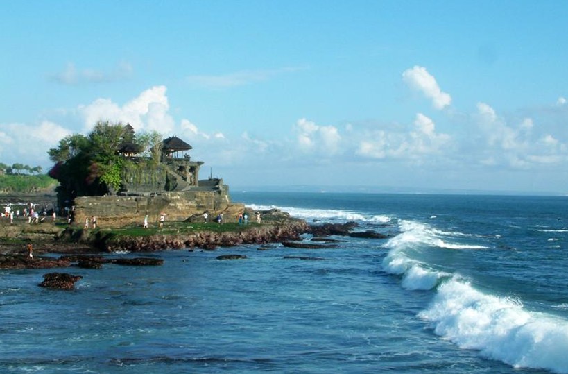 海神廟(Tanah Lot)是巴厘島最重要的海邊廟宇之一,始建于16世紀。該廟坐落在海邊一塊巨大的巖石上,每逢潮漲之時,巖石被海水包圍,整座寺廟與陸地隔絕,孤零零地矗立在海水中;只在落潮時才與陸地相連。