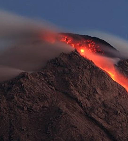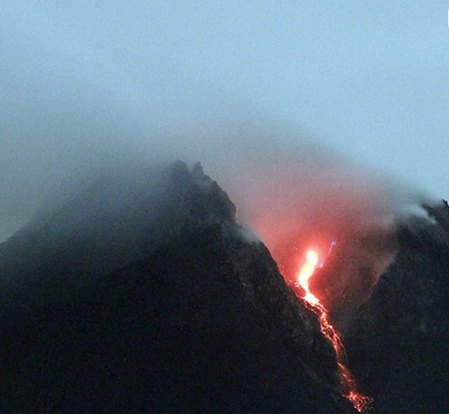 默拉皮火山位于印度尼西亞爪哇島的中部。在日惹東北32公里,海拔2911米,默拉皮意為“不滅之火”,是一個(gè)錐形火山,也是印度尼西亞活動(dòng)性最強(qiáng)的火山,1006年首次爆發(fā),山頂粉碎,毀滅了中爪島的一個(gè)王國(guó)。埋沒世界七大奇觀之一的婆羅浮屠佛塔。1548年以來(lái)又噴發(fā)68次,平均兩三年噴發(fā)一次,每次都有傷亡。火山距離日惹市相當(dāng)近,山麓居住著幾千人,有的村莊在海拔1700米的高處,當(dāng)?shù)鼐用褡裥幸环N古老的儀式,每年都在火山口旁邊牲口供祭,以期安撫默拉皮山的神靈,但死亡依然頻頻降臨。由于其威脅人類居住地的安全,被國(guó)際地球化學(xué)和火山學(xué)協(xié)會(huì)列為應(yīng)當(dāng)加強(qiáng)監(jiān)督與研究的全球16座火山之一。