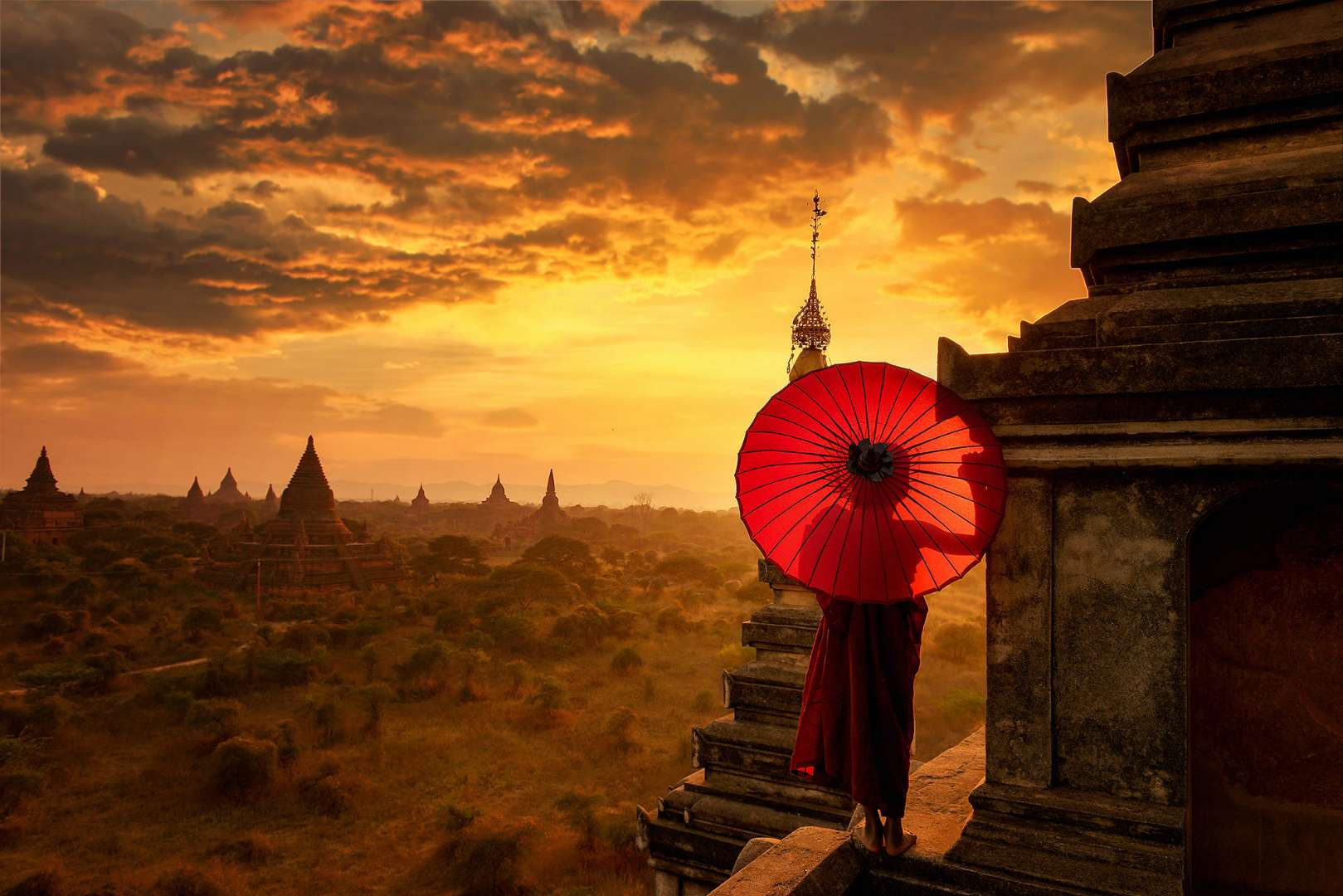 漫步在約25平方公里面積的古城蒲甘,處處可見大、小不一的佛塔矗立在街頭巷尾。真可謂:“出門見佛塔,步步遇菩薩”。據(jù)統(tǒng)計,自公元11世紀(jì)到13世紀(jì),蒲甘先后建造的佛塔就達(dá)萬余座,故蒲甘也被稱為“萬塔之城”。數(shù)百年來,雖歷經(jīng)戰(zhàn)火兵災(zāi)和1975年的大地震,蒲甘仍存有佛塔千余座。