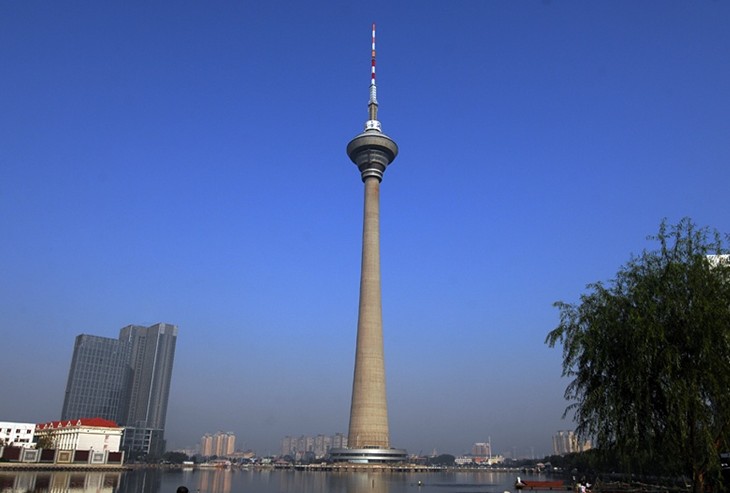天津廣播電視塔簡(jiǎn)稱“天塔”,位于天津西南,四周是 210,000 平方米的湖。“天塔”以水上天塔而著稱。“天塔”高為 415 米。在塔的 248 米和 278 米之間是一個(gè)七層的飛碟型的建筑。飛碟結(jié)構(gòu)的總面積為 4,500 平方米。除了廣播間和電力間(260m-378m)之外,還有三層覆蓋了大約 1,300 平方米的面積。第一層中是仙客來餐廳(248 米),這里提供中餐、宴會(huì)服務(wù)和卡拉OK 包間。可同時(shí)容納 100 人。