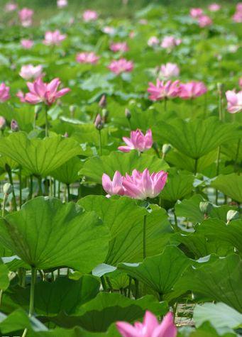 每至盛夏,微山湖數(shù)百里湖面花團(tuán)錦簇,荷花飄香。百畝、千畝、萬畝、十萬畝,大小片不等,接天連壤,一派壯觀景色。