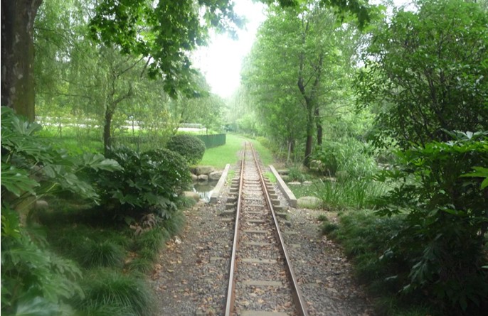 原址位于公園西門南側(cè),軌長僅300米,建有站臺、售票房、模擬動物等景點,投資56萬元。1993年集資90萬元,由中華造船廠負責施工,將軌線延伸至園內(nèi)各景點,全長約2公里,中途增設(shè)站臺4座,