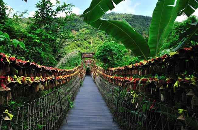 雨林谷由于地貌呈溝谷形狀,形成了最典型的溝谷雨林,溝谷內(nèi)山高林密植物遮天蔽日。投資者依勢(shì)而建了空中走廊、溜索等娛樂設(shè)施穿插其間。